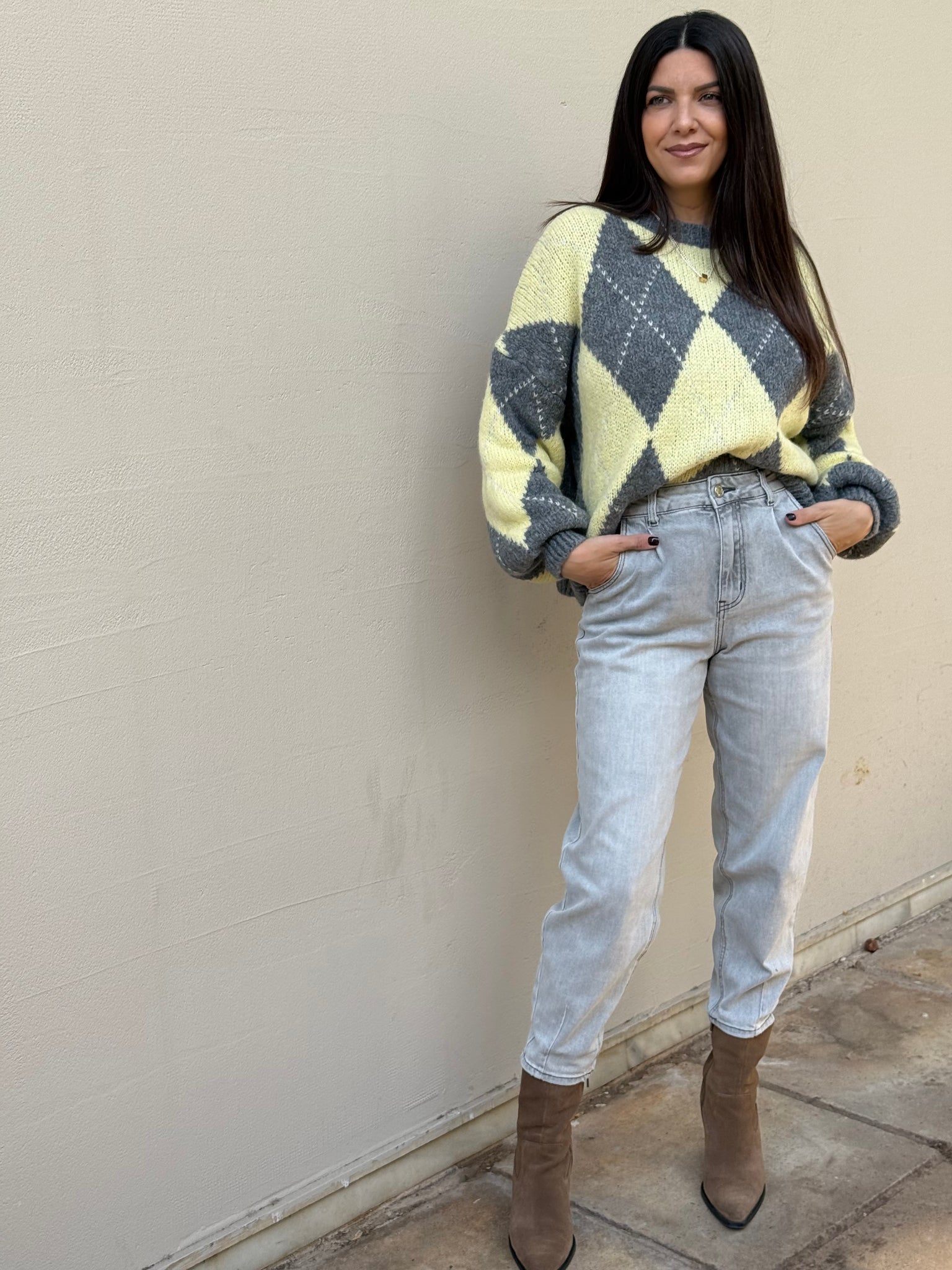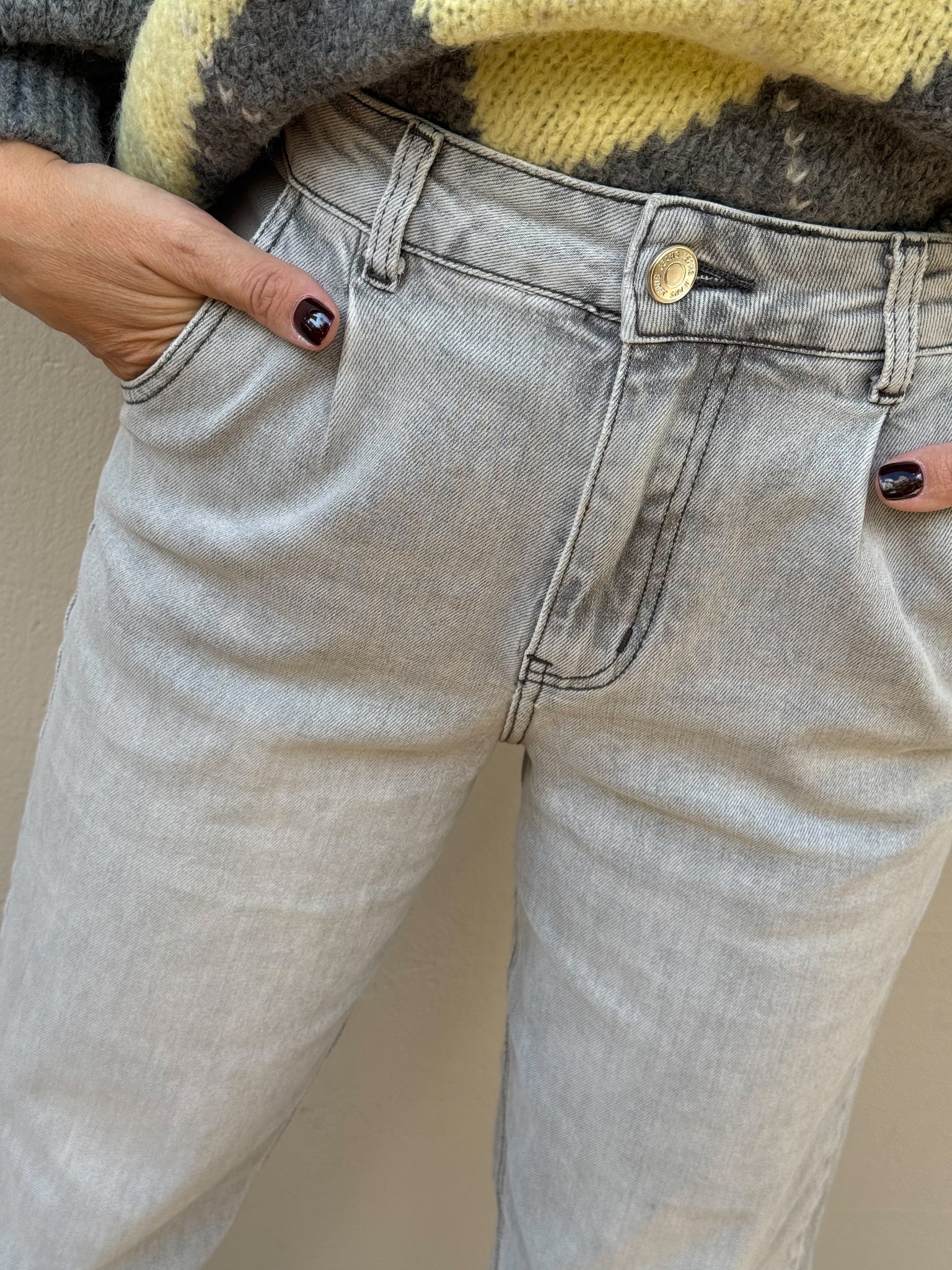 Γκρι τζιν με απαλή υφή και μικρή ελαστικότητα, που αγκαλιάζει το σώμα χωρίς να πιέζει. Άνετη εφαρμογή για όλη τη μέρα, ιδανικό για καθημερινά αλλά και πιο προσεγμένα looks.