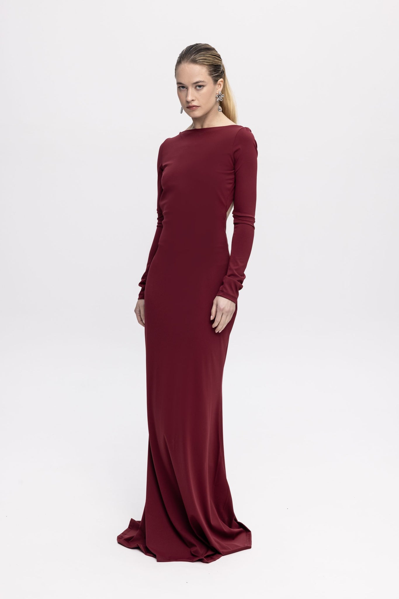 TOTAL BACKLESS DRESS BORDEAUX