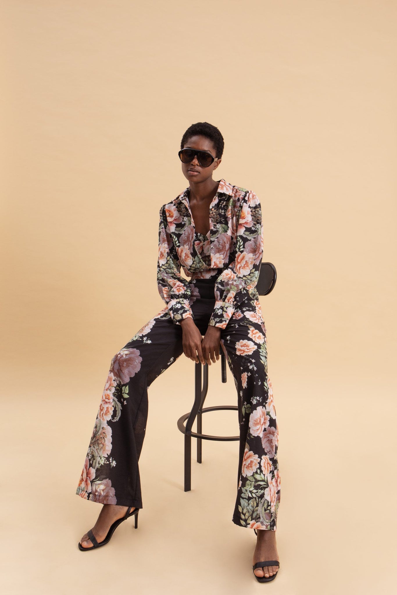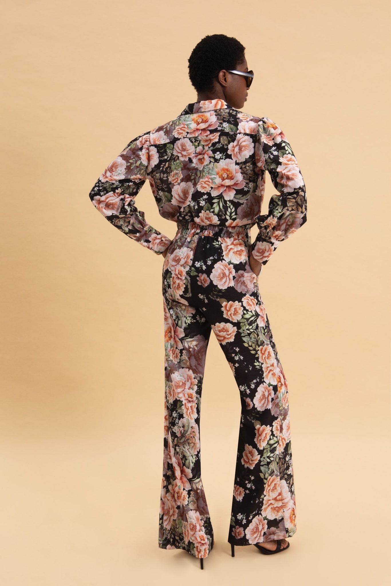 • High-waisted trousers with floral pattern